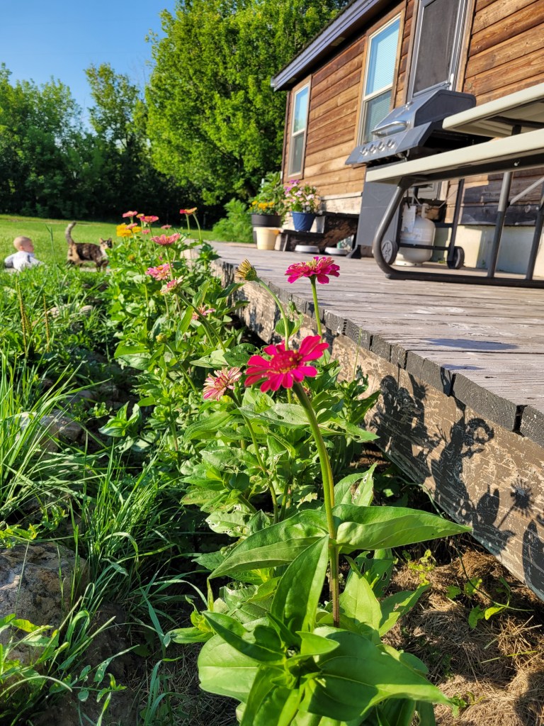 Around our humble little house I had also planted zinnias, sunflowers, and cosmos. Just this last week they began to bloom, a sight that makes me so happy.