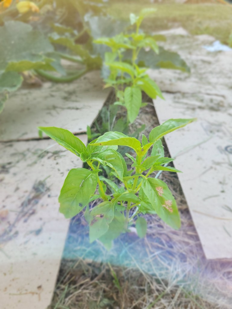 I planted 1 row of basil, 3 zucchini, and 4 tomatoes.